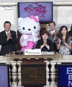 Last Wednesday, Hello Kitty was joined by Sanrio COO Kunihiko Tusji and Maxine Clark, founder, chairman and CEO of Build-A-Bear Workshop to ring the closing bell of the New York Stock Exchange – all to commemorate Sanrio’s 50th Anniversary.