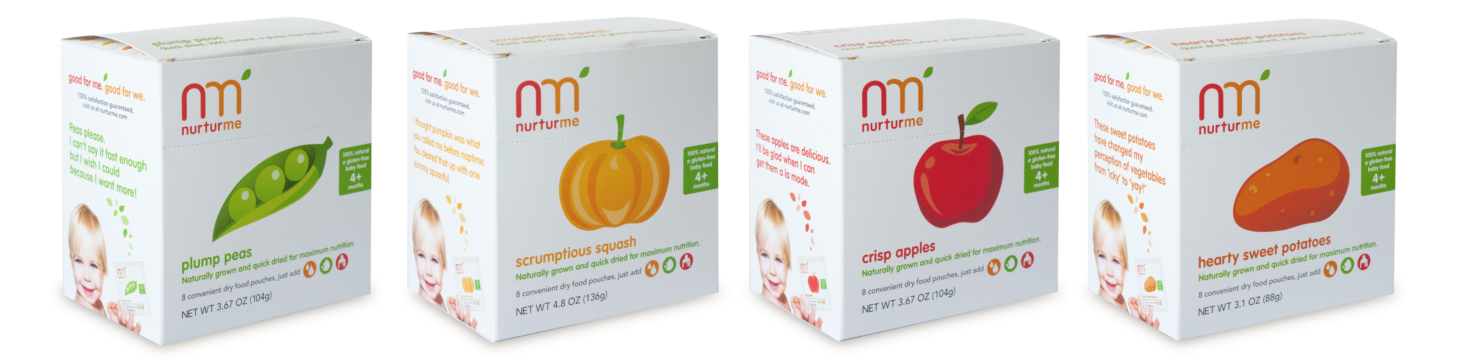 Freed Foods LLC, a food company founded by a mom-to-be in search of the perfect baby food launches NurturMe, the first and only certified-organic, all-natural, gluten-free baby food made from nutrient-rich, quick-dried fruits and vegetables. By quick-drying, rather than cooking, its ingredients, NurturMe preserves the vital nutrients and phytochemicals found in fruits and vegetables, making it one of the most natural and nutritious baby foods available. Each pouch may be mixed with breast milk, whole milk, formula or water in any amount or combination, enabling feedings to be customized completely to baby and mother’s needs. Designed for children from the age of four months to four years, NurturMe may also be sprinkled into grains, homemade purees, yogurts, apple sauce and macaroni & cheese to give them a delicious and nutritious boost.