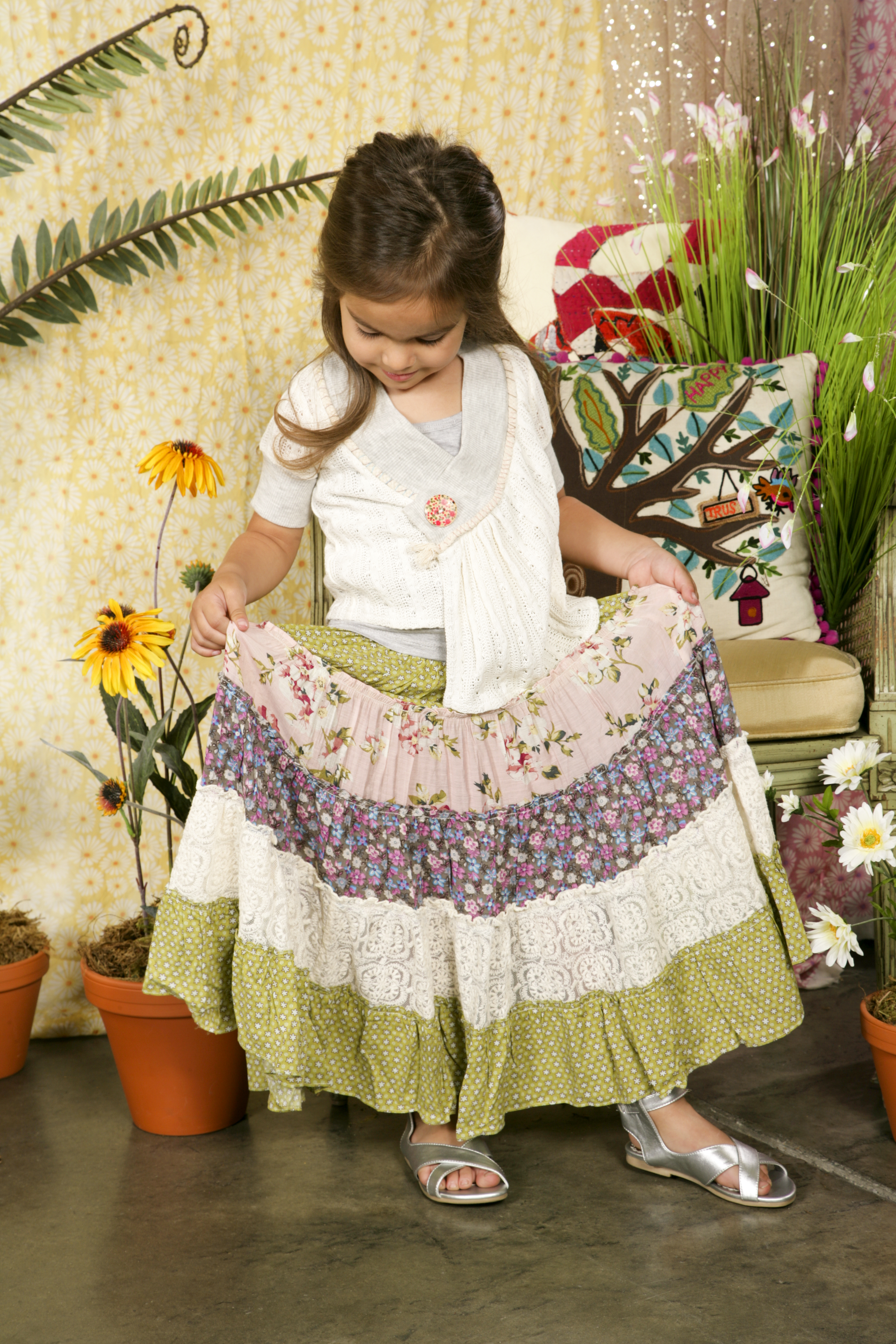 We try to give our customers the latest fashion, designed with kids in mind. We want our kids to be fashionable, sensible and comfortable. For the coming spring and summer, fashion is trending toward long dresses, wide-legged pants with crop tops … bold prints, ditsy prints and a lot of bright colors; stripes are a must; romantic looks and lace, just to name a few. It’s a certain ‘look’ we achieve while still being age-appropriate and kid-friendly. You’ll see a lot of these elements in our designs this season!