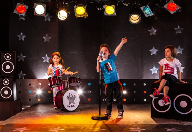 In April, photographer AJ Mueller and his team at Streetview Productions hand-built a stage backdrop for the Little Trendstar Spring/Summer collection photo shoot. “We added just enough star quality to really give off a rock concert vibe,” Nicole writes on her blog. The models did a fantastic job performing and letting their inner rock star shine.”
