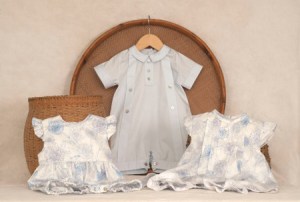 For those looking for unisex options, the line offers neutral creams as well as bold primaries and sunny yellows with animal, toy, teddy bear and sweet pea graphics. Both fabric and pattern mixing up the sophistication level throughout while embroidery details provide a subtle bit of whimsy. Pieces with all-over stripes, dots and stars coordinate with individual groupings while a windowpane check pattern intermixes with several boys’ themes. Silhouettes include rompers, footies, playsuits, pants sets, gowns, A-line dresses, drop-waist dresses, swing tops and bishops bodies. The collection features sumptuous velours, chic knits and quilted textures on cozy hats, cardigans, blankets and buntings. Sizes run from preemie through 4T.